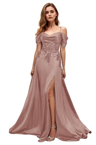 ISABUFEI Satin Formal Evening Gowns - A-Line Long Wedding Guest Dresses Off Shoulder Prom Dress 4