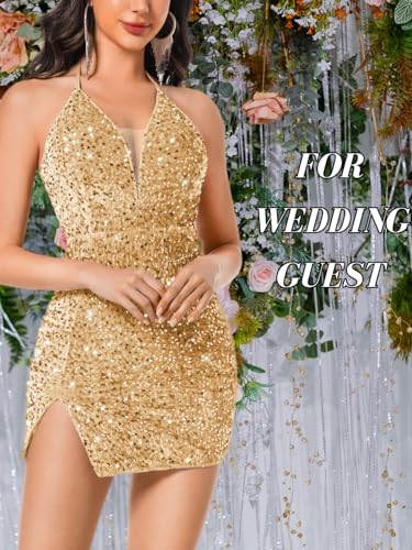 HOT ! Sexy Sequin Dress for Women,Sparkly Glitter Velvet Mini Prom Dresses,Plunge Backless Club Outfit Cocktail Party