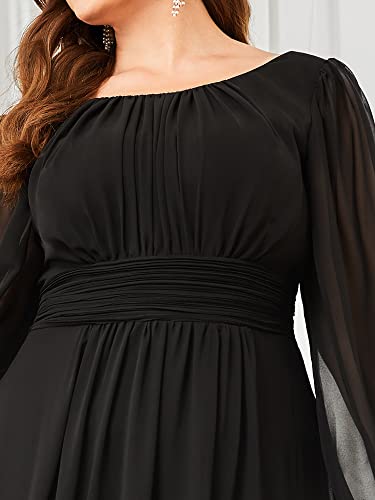 HOT ! Ever-Pretty Women's Round Neck Long Sleeves Empire Waist Elastic Chiffon Flowy Plus Size Formal Evening Gown Bridesmaid Dress