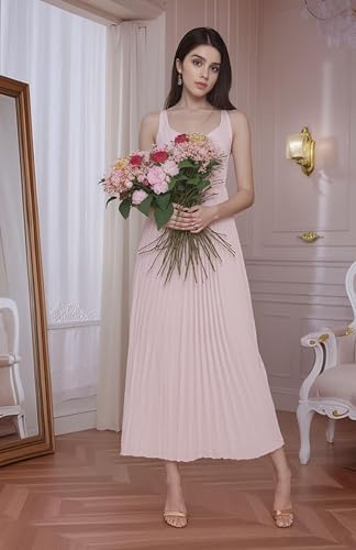 More information about Tea Length Pleated Bridesmaid Dresses for Wedding Spaghetti Strap Prom Gown Satin Long Maxi Formal Dress 2025