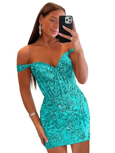 Short Homecoming Dresses for Teens Sequin Off The Shoulder Cocktail Party Dress 6