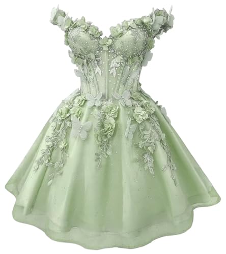 More information about 3D Butterfly Off Shoulder Homecoming Dresses for Teens 2025 Short Glitter Tulle Lace Corset Prom Cocktail Party Gowns