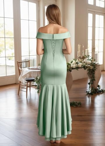 Eightale Satin Off Shoulder Mother of The Bride Dress Long Mermaid High Low Ruffle Formal Evening Party Gown 6