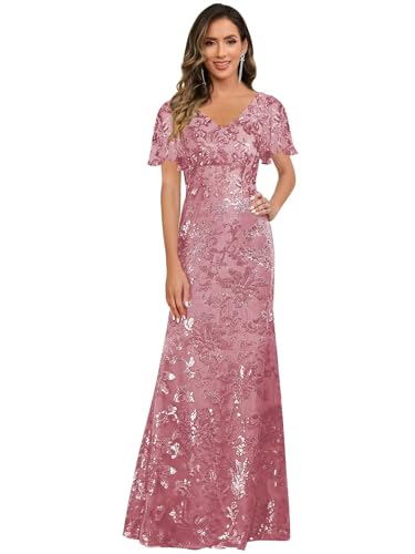 More information about V Neck Mother of The Bride Dresses for Women Short Sleeve Long Sequin Lace Evening Formal Dress