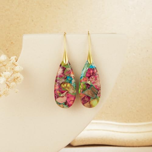 • Teardrop Earrings:The statement earrings dangling combine the classic teardrop design with colorful stone. This colorful stone has unique patterns and color variations, making each pair of stone drop earrings unique, highly personalized and charming