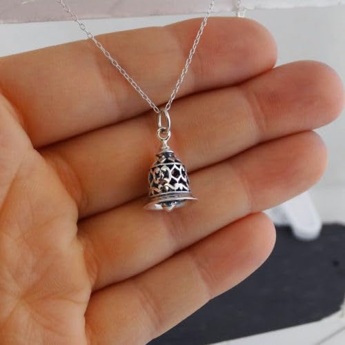 • Perfect Size and Shape: Our necklace with bell boasts a beautifully balanced design, measuring 1 inch x 1.5 inch dangling gracefully from the included 18” sterling silver chain. This meticulously crafted size and shape ensure it complements any neckline, making it an ideal accessory for both casual and formal occasions, adding a touch of grace to your everyday ensemble.