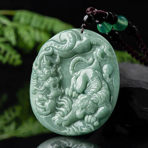 HOT ! Hand-Carved Dragon Tiger Natural Jade Pendant Necklace for Men Women, Zodiac Stone Amulet Fashion Jewelry Accessories Necklace for Gifts