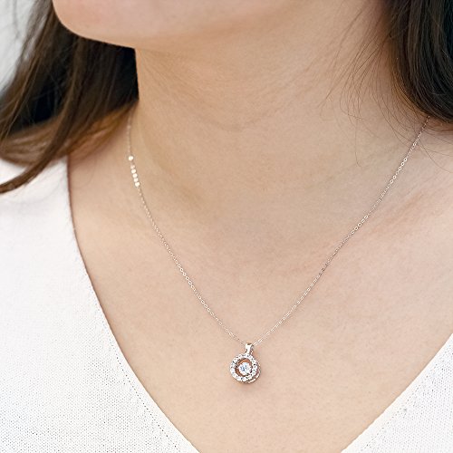 • DANCING CUBIC ZIRCONIA CZ: The pendant necklace features a captivating "dancing" cubic zirconia CZ stone at its center. This unique design allows the stone to move and shimmer with every motion, creating a mesmerizing and eye-catching effect that adds a touch of elegance and charm to your look.