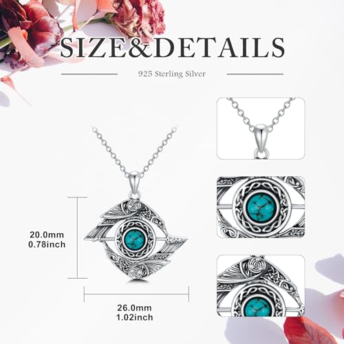 Natural Turquoise Crow Necklace for Women 925 Sterling Silver Crow Pendant Viking Odin Raven Pendant Necklace Celtic Crow Jewelry Gifts for Mom Wife 4