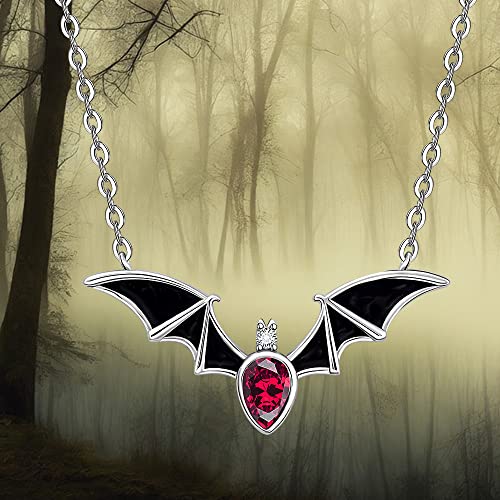 HOT ! Halloween Bat Necklace Sterling Silver for Women Black Ruby Amethyst Sapphire Diamond Cubic Zirconia Choker Vampire Witch Ghost Vintage Gothic Festival Classic Witch Funny Cute Dainty Christmas Gift