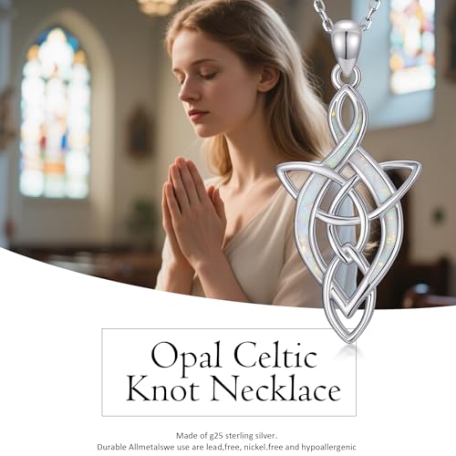 Celtic Knot Necklace for Women 925 Sterling Silver Opal Irish Necklace Infinity Heart Pendant Celtic Jewelry Birthday Gifts for Girlfriend Mom 4