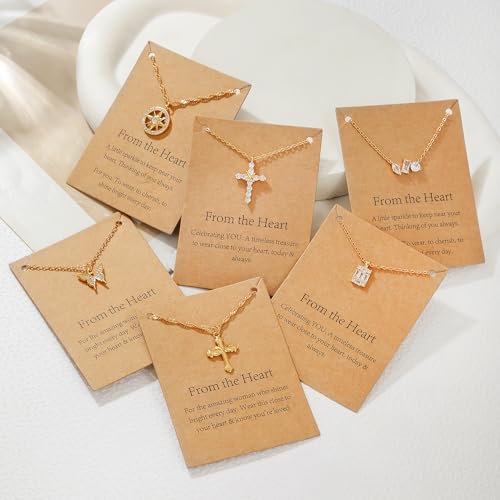 • NECKLACE SET: Includes 6 different pendant necklaces, including cross necklace, love heart necklace, butterfly necklace, and CZ diamond necklace with message cards for gifting