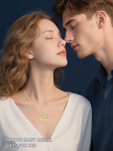 HOT ! Patron Saint Medals, 14K Gold Catholic Pendant Necklaces, Christian Jewelry Religious Gifts for Women with 22"+2" Mariner Chain