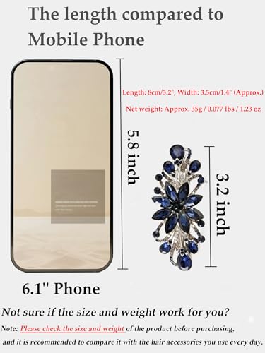 More information about Flower Luxury Jewelry Design Hairpin Rhinestone Hair Barrette Clip,Also Perfect Mother's Day Gifts for Mom(Dark Blue)