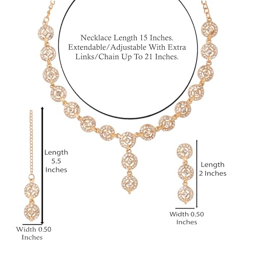 • Sunsoul By Touchstone Indian Bollywood Rich Classy Workmanship Sparkling Rhinestone Round Shape Elegant Designer Jewelry Bridal Necklace Set With Mangtika In Gold Tone For Women. EXTRA LONG EARRINGS: Length 2.00 Inches. SPECIFICATIONS: Necklace Length 15 Inches. Extendable/Adjustable With Extra Links/Chain Up To 21 Inches. Earring Weight (Single) 5 Gms. Earring Length 2.00 Inches. Earring Width 0.50 Inch.