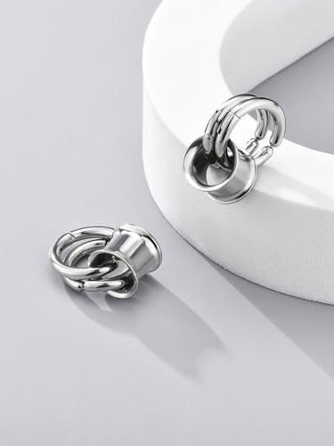 More information about PiercingJ 1 Pair Ear Guages with Rings Ear Weight Plugs Tunnels Hypoallergenic Ear Expander Stretchers 316 Stainless Steel Hoop Earrings Piercing Body Jewelry 0G 00G 1/2" 9/16"