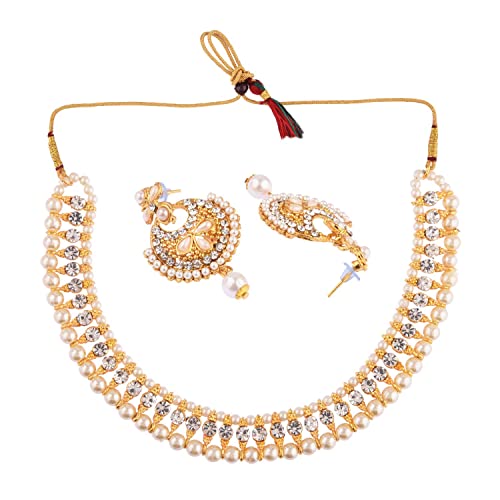 HOT ! Efulgenz Indian Pearl Necklaces for Women Beaded Necklace Faux Pearl Crystal CZ Cubic Zirconia Choker Necklace Earrings Jewelry Set for Women Bollywood Wedding Jewellery