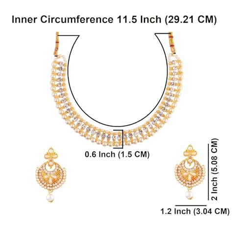 • Antique designer gold tone necklace earrings set for women, Inner Circumference: 11.5 Inch (29.21 cm), A pair of dangle earrings Length x Width: 2 Inch x 1.2 Inch (5.08 cm x 3.04 cm), Metal: Alloy.