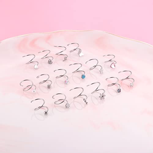 FASACCO 16Pcs Double Nose Ring Hoop for Single Piercing 20 Gauge Stainless Steel Nose Hoop Spiral Star Pearl CZ Butterfly Twist Nose Ring Hoops Double Hoop Earrings for Women 5