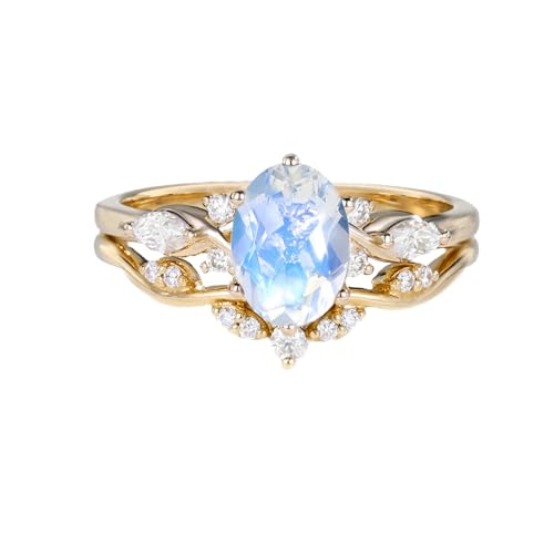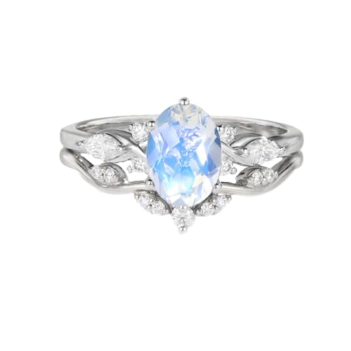 • 【Material】: This moonstone bridal ring set is made of high-quality 925 sterling silver and 10k/14k/18k solid gold, lead-free, nickel-free and non-allergenic, suitable for all women.