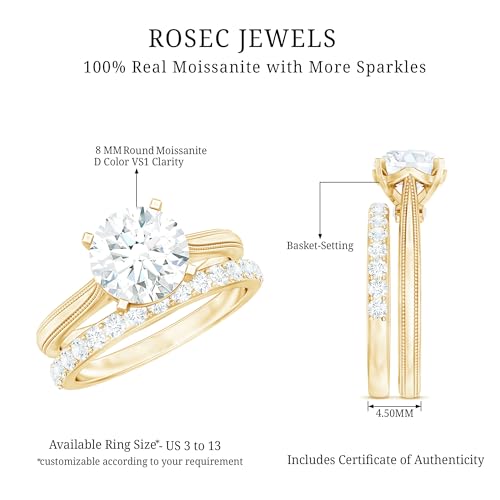Certified Moissanite Engagement Ring With Wedding Band, 8 mm Round Moissanite Bridal Ring Set - Ready to Gift 5