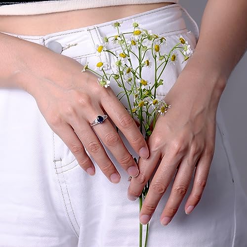 • Main Stone: 1.75 ct Created Sapphire(8×6mm), ----Accent Stone: Cubic Zirconia,----Metal: Sterling Silver Plated With Rhodium,----Color: Blue,----Birthstone:September Birthstone,---- Anniversary Gems:5th,45th,75th Anniversary Gemstone