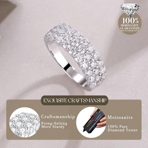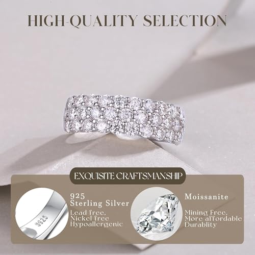 Moissanite Wedding Band Ring, 3-Row Wdith Half Eternity Band Moissanite D Color VVS1 Simulated Diamond Rings 925 Sterling Silver Prong Setting, Anniversary and Bridal Gift for Women Wife, All Size 4