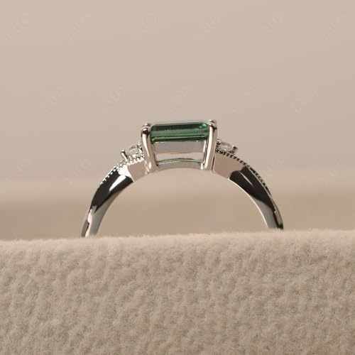 LUO 925 Sterling Silver Emerald Cut 7X5 MM Gemstone Ring, East West Engagement Ring for Women Jewelry 6