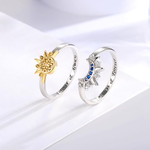 Sterling Silver Moon Sun Rings Set for 2 Stackable Matching Ring Friendship Couples Mother Daughter Promise Jewelry Gifts for Women Bff 5