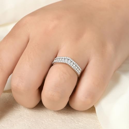 • Authentic Moissanite Wedding Band for Women: Lab-created 0.8 CTTW moissanite stones in D-color (colorless range) with VVS1 clarity. Set in certified 925 sterling silver with rhodium plating for lasting shine. Classic round cut design compatible with most engagement ring styles.
