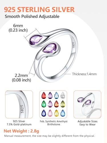 HOT ! Silvora 925 Sterling Silver Adjustable Ring Wrap Birthstones Open Rings for Women Ring with 2 Pear Shaped Gemstone, Birthstone Ring for Mother