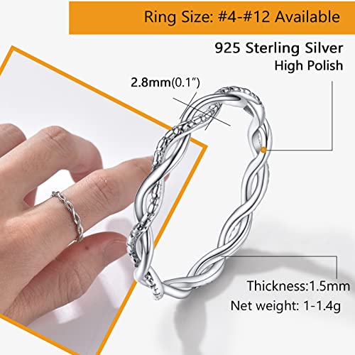 PROSILVER 925 Sterling Silver Rings for Women, 2mm/3mm Wedding Band, Dainty Triple Rings, Cuban Link, Celtic Knot, X Cross Rings, Comfort Fit, #4-#12, Boxed 4