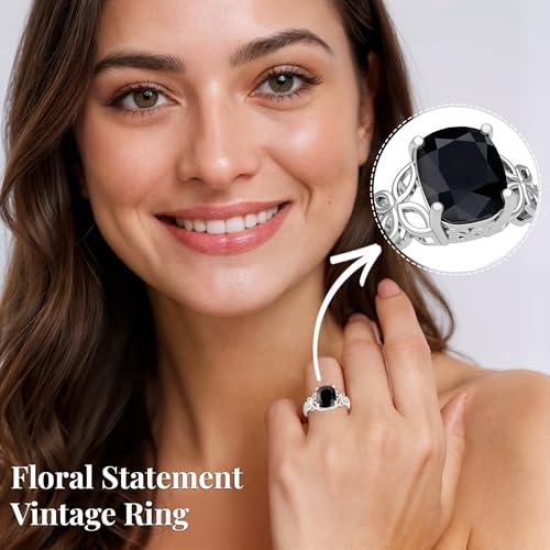 • IDEAL GIFT - The black rings for women or black gemstone rings for women come with a beautiful gift box, making these vintage rings for women a perfect present for any occasion. This black stone ring or silver birthstone rings makes a great gift for your sister, daughter, mom, wife.