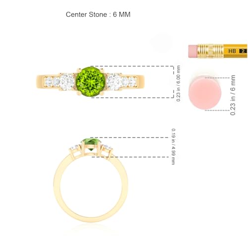 Natural Peridot and Diamond Ring for Women in 14K Solid Gold | August Birthstone Ring for Birthday, Engagement, Anniversary, Wedding Jewelry Gift for Women | Three Stone Design 5