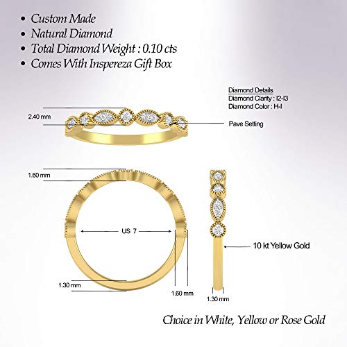 HOT ! Inspereza 1/10 Carat 10kt Gold Round Diamond Petite Milgrain Wedding Anniversary Stackable Band. (H-I Color, I2-I3 Clarity)