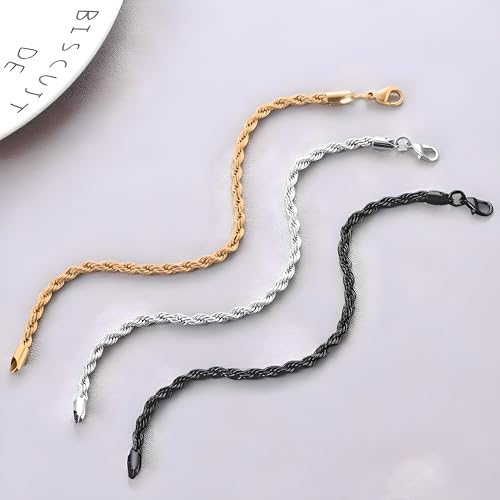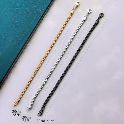 3PCS Stainless Steel Bracelets for Men Gold, Silver, Black Bracelet Twisted Cable Mens Luxury Jewelry Bracelets Gifts 6