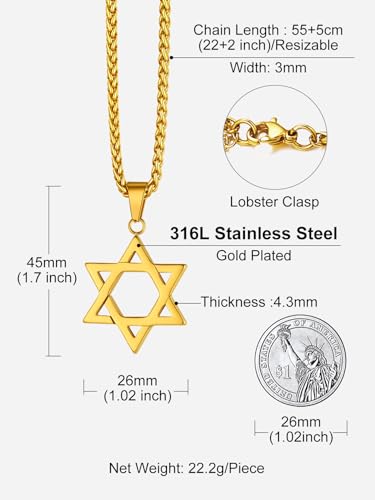 Richsteel Star of David Necklaces for Women Mens Stainless Steel/18K Gold Plated Hexagram Pendant Jewish Israel Jewelry 6