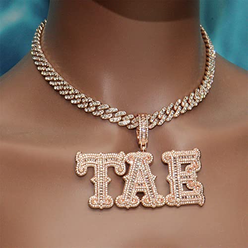 HOT ! Hip Hop Custom Big Baguettes Letters Name Necklace With 9mm Cuban Link Chain VVS Clarity Cubic Zirconia Iced Out Personalized Name Pendants Charm Jewelry for Women Men