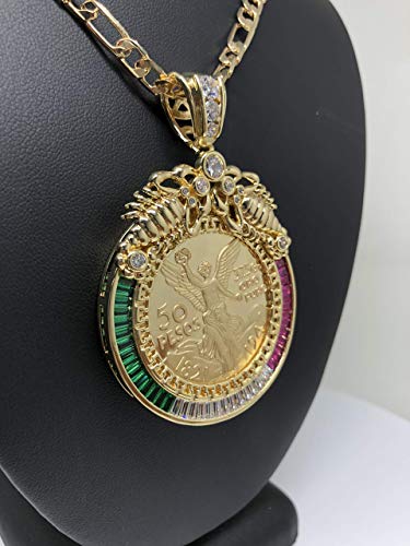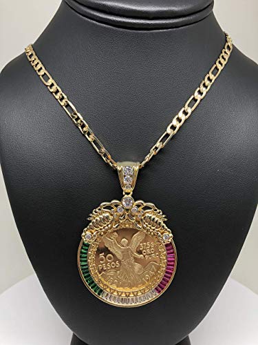 More information about Fran & Co. Gold Plated Coin Centenario Mexicano Moneda 50 Pesos Pendant Chain CZ Oro Cadena 26”