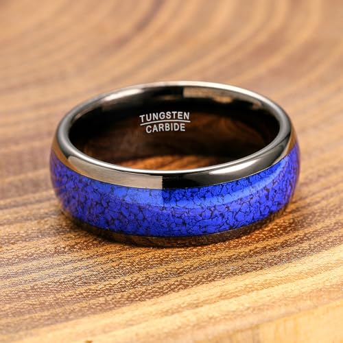 More information about Vakki Black Blue Tungsten Rings for Men Women Lapis Lazuli Inlay 4mm 6mm 8mm Gunmetal Tungsten Carbide Engagement Wedding Band Domed Comfort Fit Size 5-12