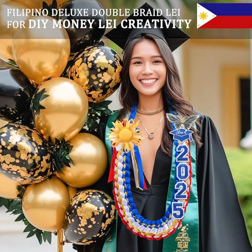 HOT ! 50" Philippines Graduation Leis Class of 2025 Filipino Graduation Ribbon Lei Double Braided Handmade Congrats Graduates Lei with Satin Flower Pin Gift for Grad Accessories Men Women