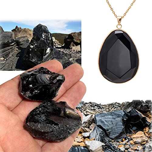• Hand wrapped yellow gold tone copper metal around the black obsidian drop, to hold up and protect the stone; Big pendant bail adaptable for various of chains