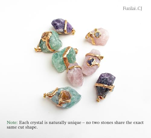 • Fuzilai.J Brand - Naturally Unique & Handmade Artistry : Each pendant features a raw-cut natural healing crystal (Amethyst, Rose Quartz, or Green Quartz) in organic 1.6"-2" shapes, handset with hypoallergenic gold-plated accents. No two stones are identical—your necklace is a one-of-a-kind signature of nature’s artistry, perfect for those seeking unique, handcrafted jewelry.