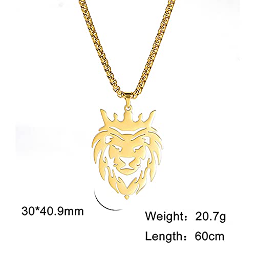 Dreamtimes Lion With King Crown Necklaces for Men Punk Animal Stainless Steel Pendant Necklace Men's Chain Fashion Jewelry Gothic Punk Rock Mens Pendant Necklace 6