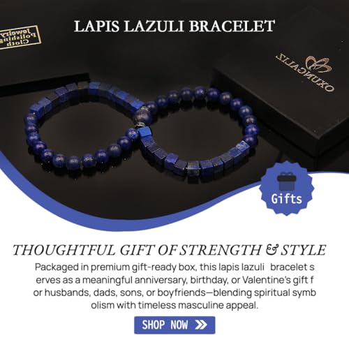 • Thoughtful Gift of Strength & Style: Packaged in premium gift-ready box, this lapis lazuli bracelet serves as a meaningful anniversary, birthday, or Valentine’s gift for husbands, dads, sons, or boyfriends—blending spiritual symbolism with timeless masculine appeal.
