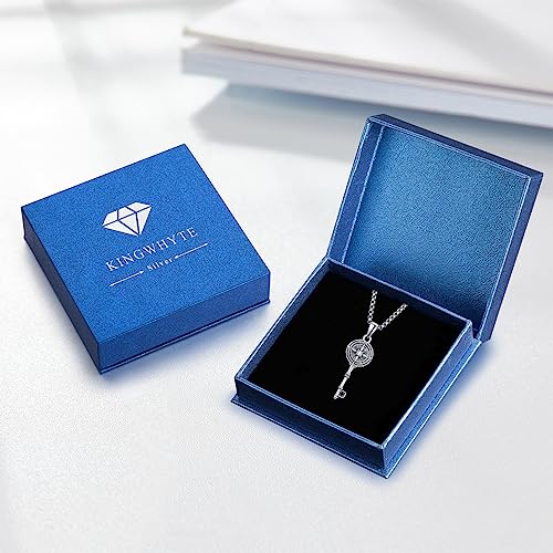 HOT ! KINGWHYTE Compass Necklace for Men 925 Sterling Silver Birthday Gifts Graduation Travel Jewelry for Husband Brother with Stainless Steel Chain