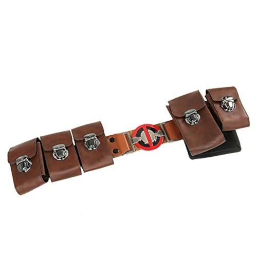 HOT ! Adult Men Wade Costume Belt with Pouches Bag Brown Leather Adjustable Waist Belts Halloween Cosplay Props (Medium)