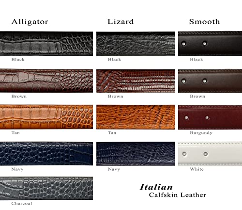 • Made from High-quality Genuine Full-Grain Cowhide Leather, Alligator Embossed belt strap with matching leather loop.