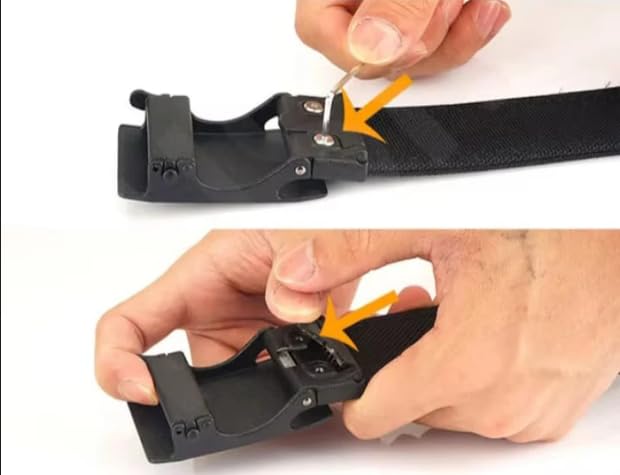 • Quick Release Design: Features an innovative slide buckle mechanism that allows for fast and effortless belt removal with a simple press of the release button