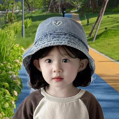 HOT ! Kids Sun Hat Cute Casual Bucket Hat for Trips Outdoor Activities Spring Summer Denim Fisherman Hat for Boys Girls 2-7 Years- Light Blue